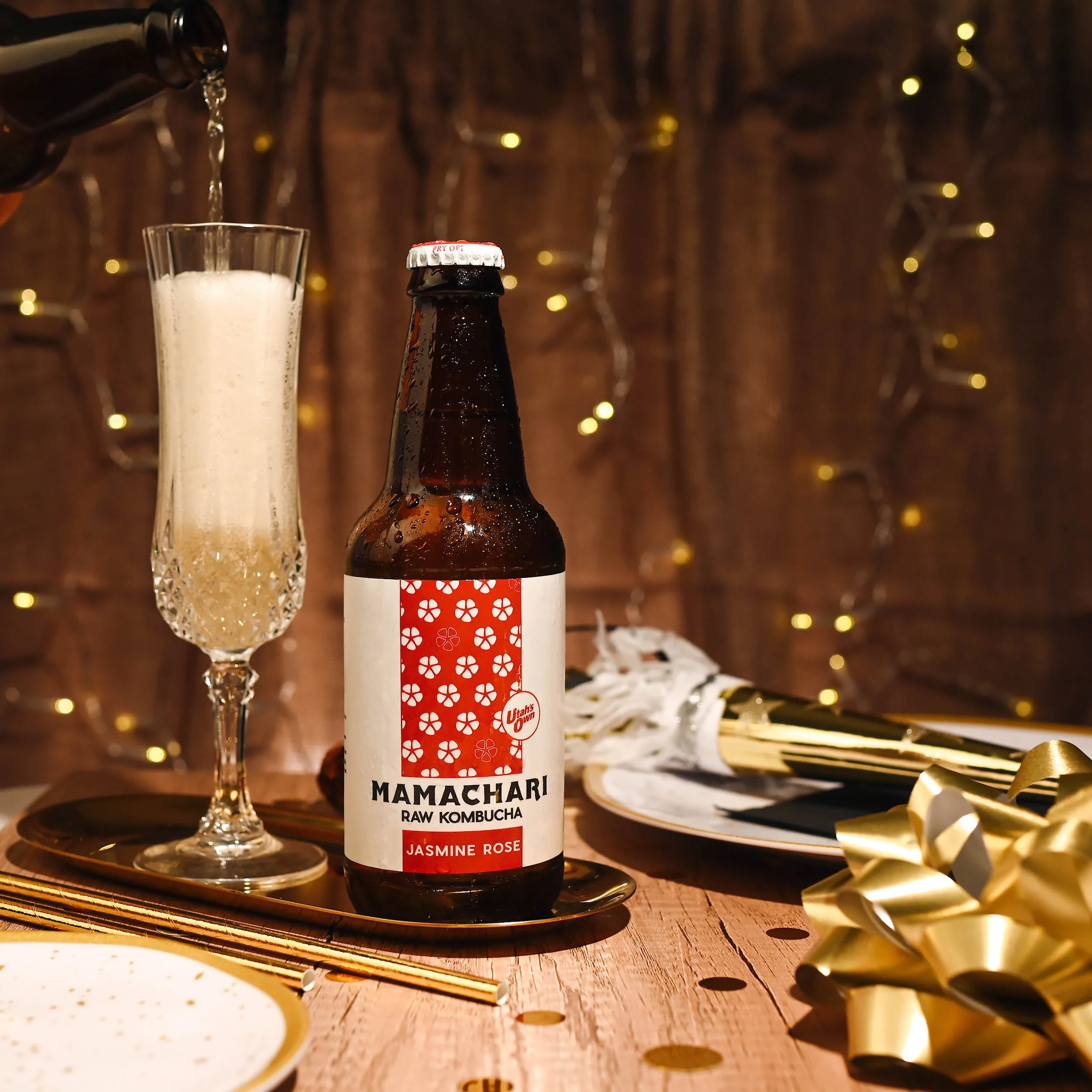 A lovely blend of organic jasmine green tea and Japanese cherry rose sencha tea, fermented to perfection.