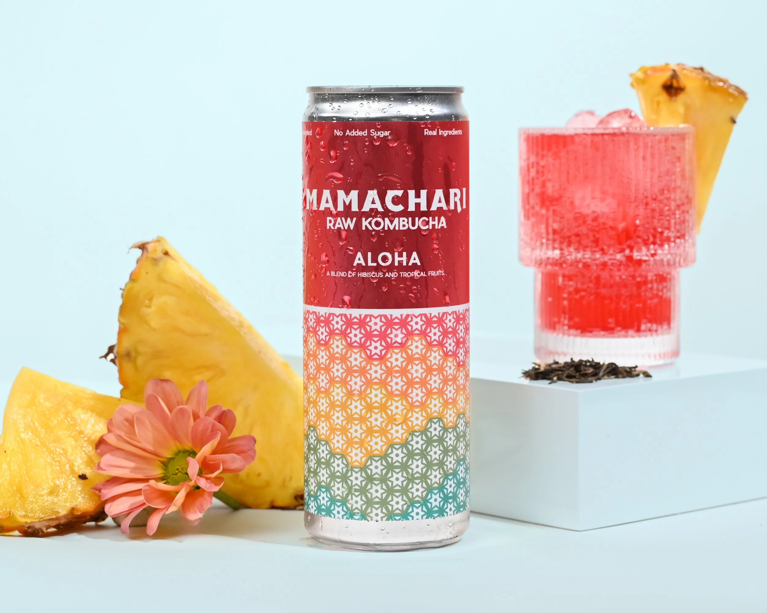 Blend of tropical fruits and hibiscus accent this perfectly balanced kombucha flavor, not overly juicy or sweet, not underly flavored or mild.